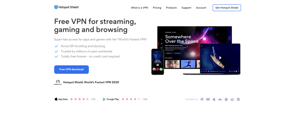 | Hotspot Shield VPN | 500MB/day | 1 | Yes | USA |