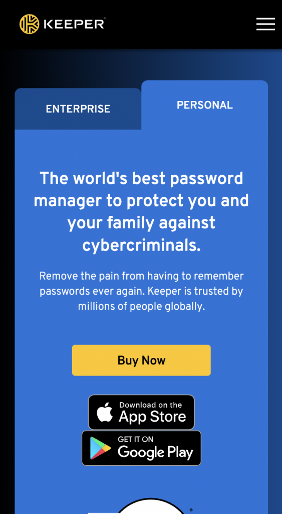 | Personal | The Personal Keeper plan lets you store unlimited passwords—accessible from all your devices. Monthly rates start at $2.92. |