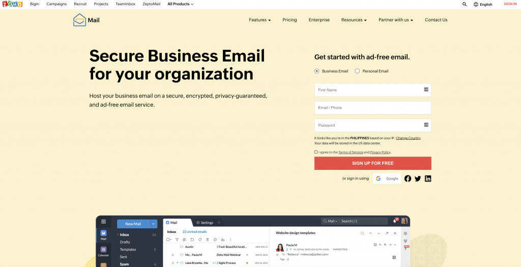 Zoho Mail is a reliable email service with a variety of features to support businesses of all sizes. It offers a pay-as-you-go pricing model, so you only need to pay for the features you use.